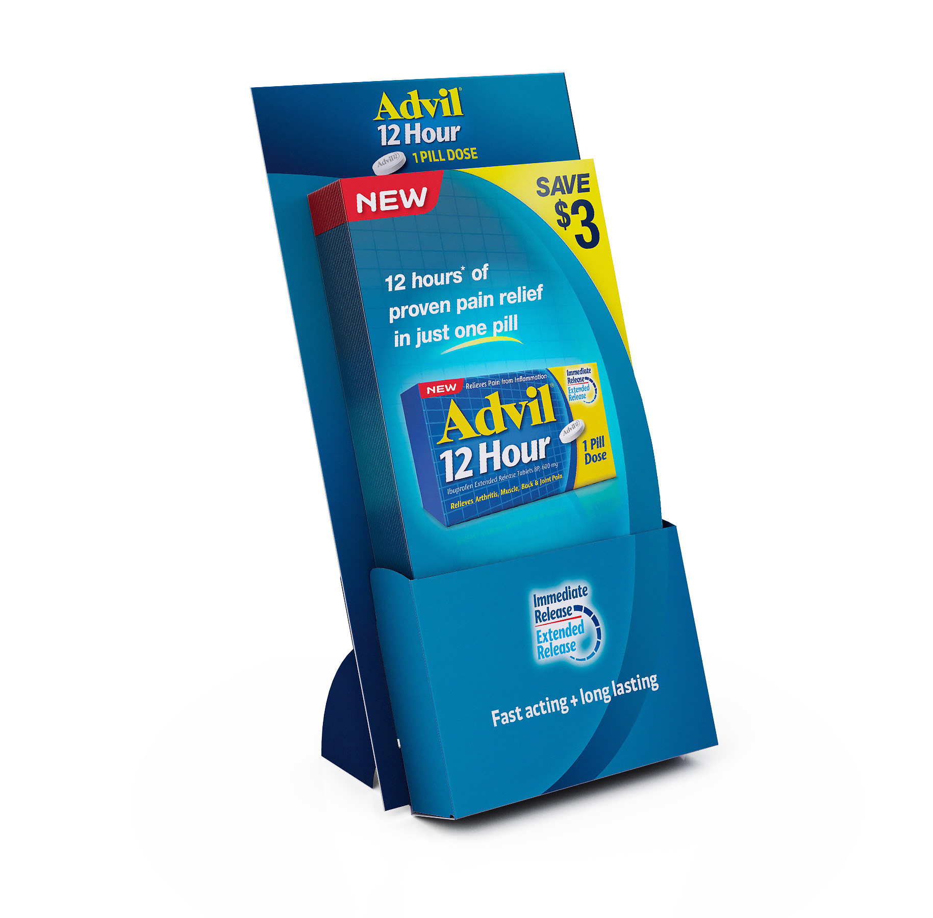 To launch the new Advil 24HR product in Canada, POS displays, info brochures and sales sheets were created.