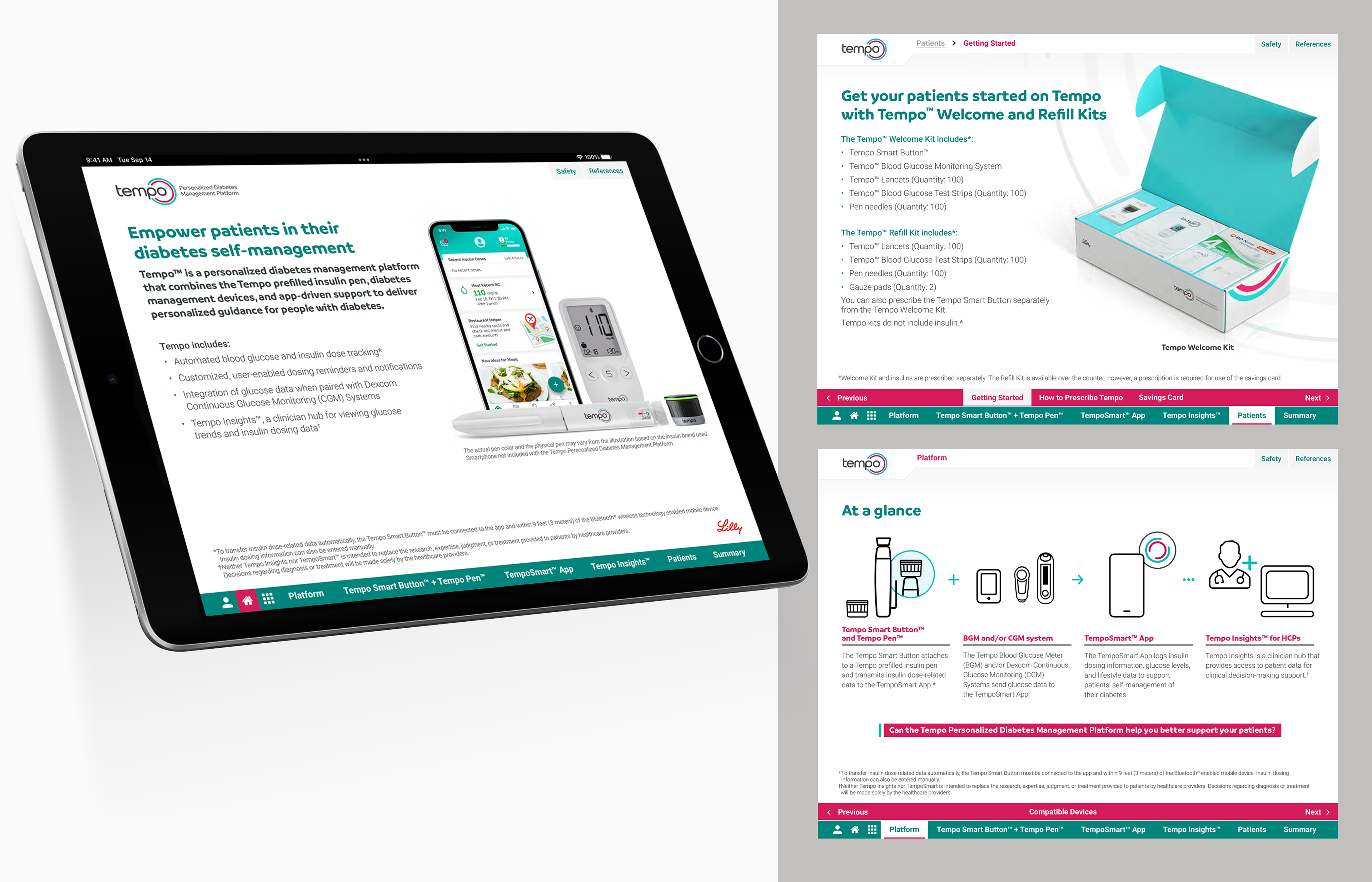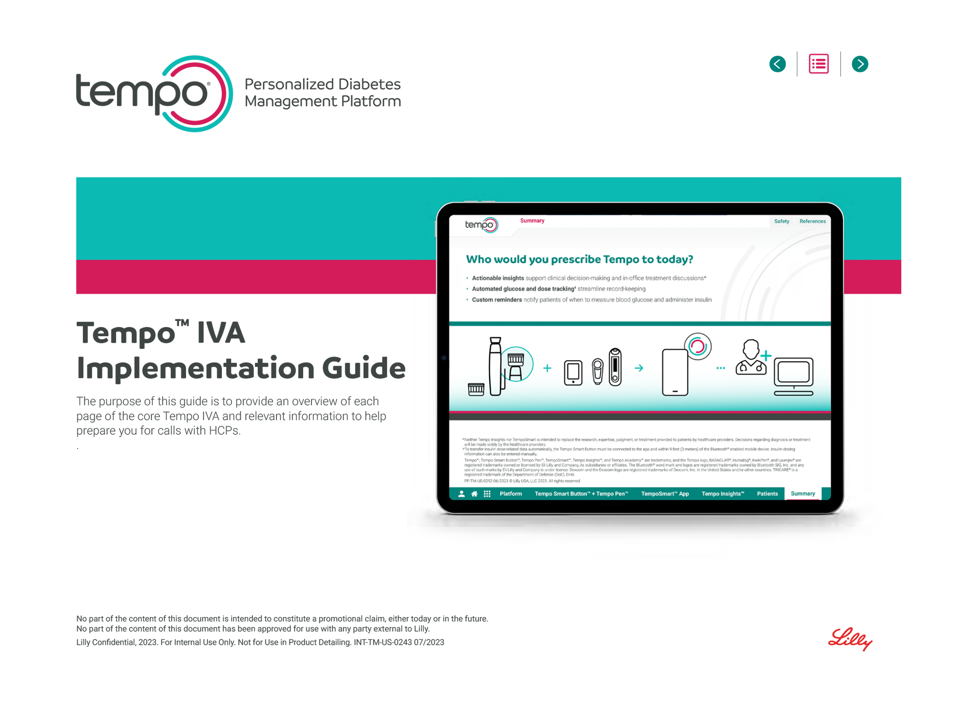 Tempo IVA (Interactive Visual Aid) used by reps to detail the product to specialists
